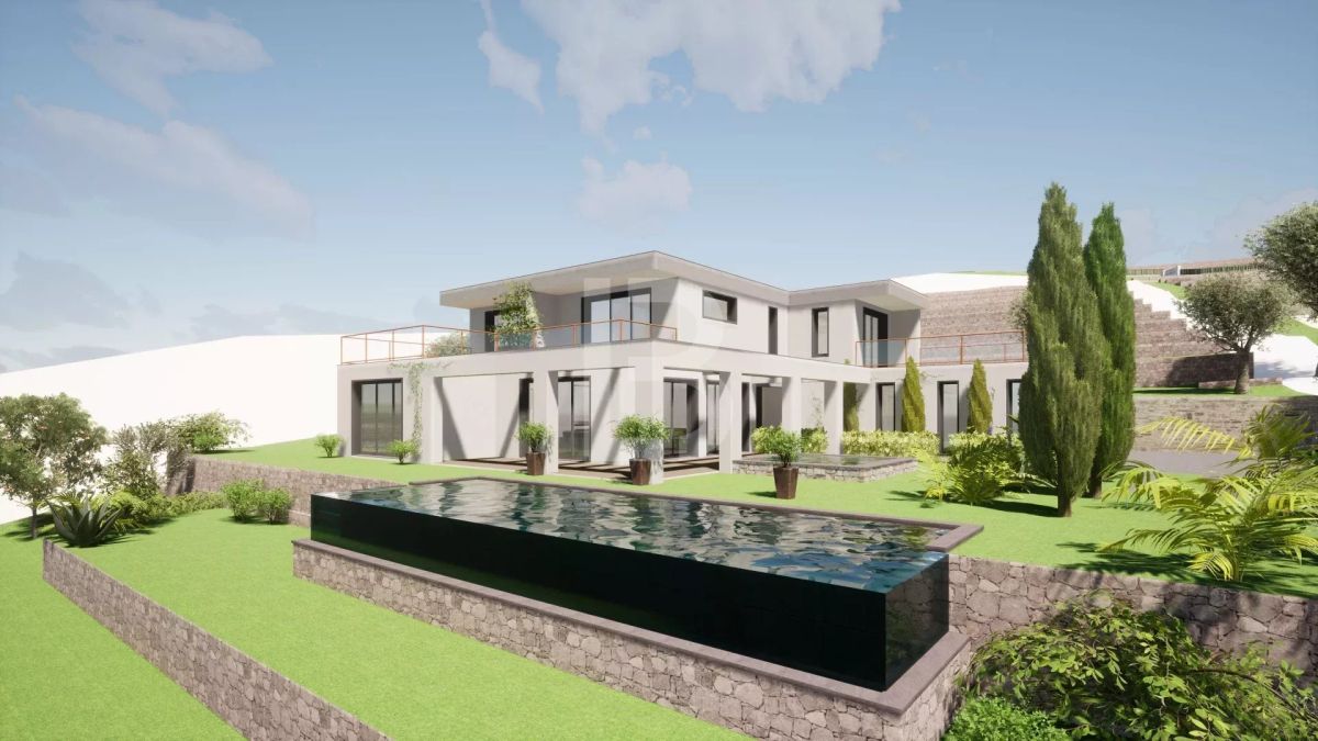 Sold with a fully approved building permit for a contemporary villa comprising: a large bright living area, five en-suite bedrooms, a garage, a swimming pool, and terraces.