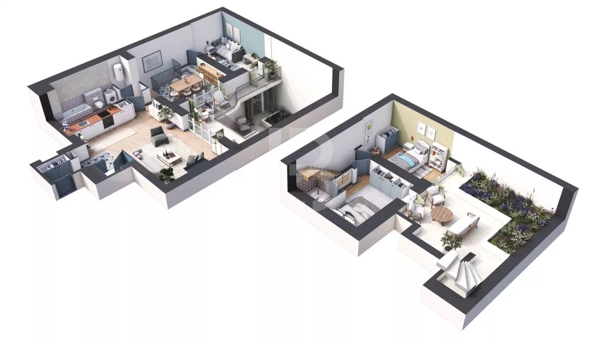 This spacious 4-room apartment on the quiet courtyard side consists of an entrance hall with guest toilet leading to a beautiful living room with open-plan kitchen opening onto the balcony overlooking the private courtyard through a large bay window, a dining room also opening onto the balcony through a large bay window, a bathroom with toilet, a bedroom opening onto the balcony, and a staircase leading to two other bedrooms overlooking the private courtyard and a shower room.