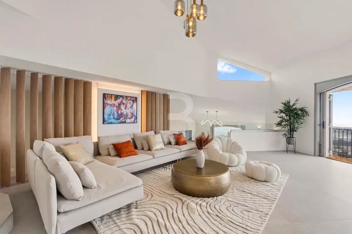 Discover this sumptuous villa in the hills above Mandelieu, offering exceptional panoramic views of the Mediterranean Sea and the Lérins Islands.