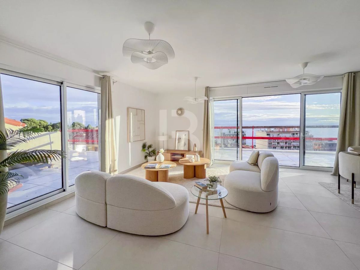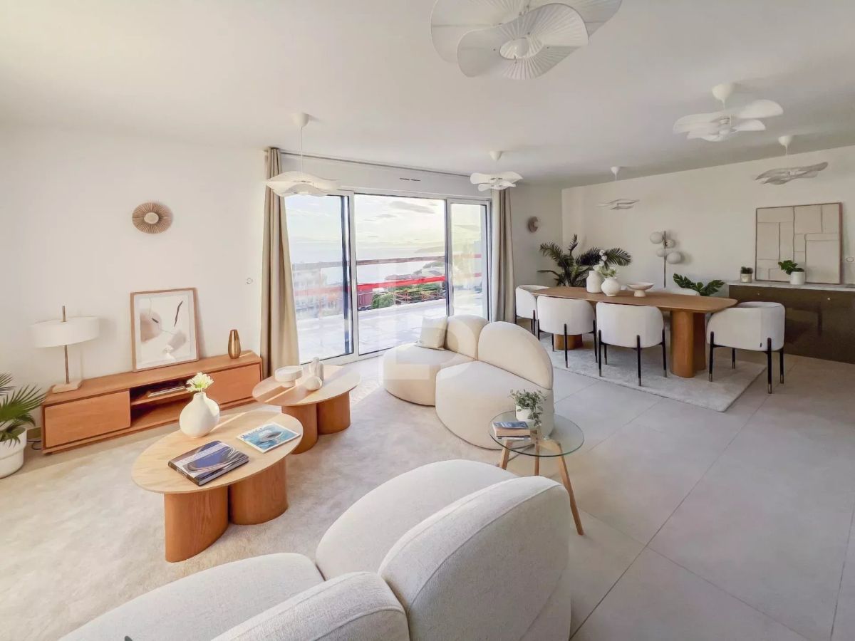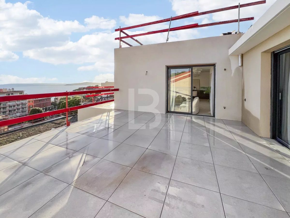 Avec ses prestations de standing, cet appartement comme une villa-sur-le-toit se compose d'une entrée avec placard desservant un spacieux séjour/cuisine d'angle s'ouvrant, par deux larges baies vitrées sur de profondes terrasses bénéficiant d'une magnifique vue sur la mer et la ville.